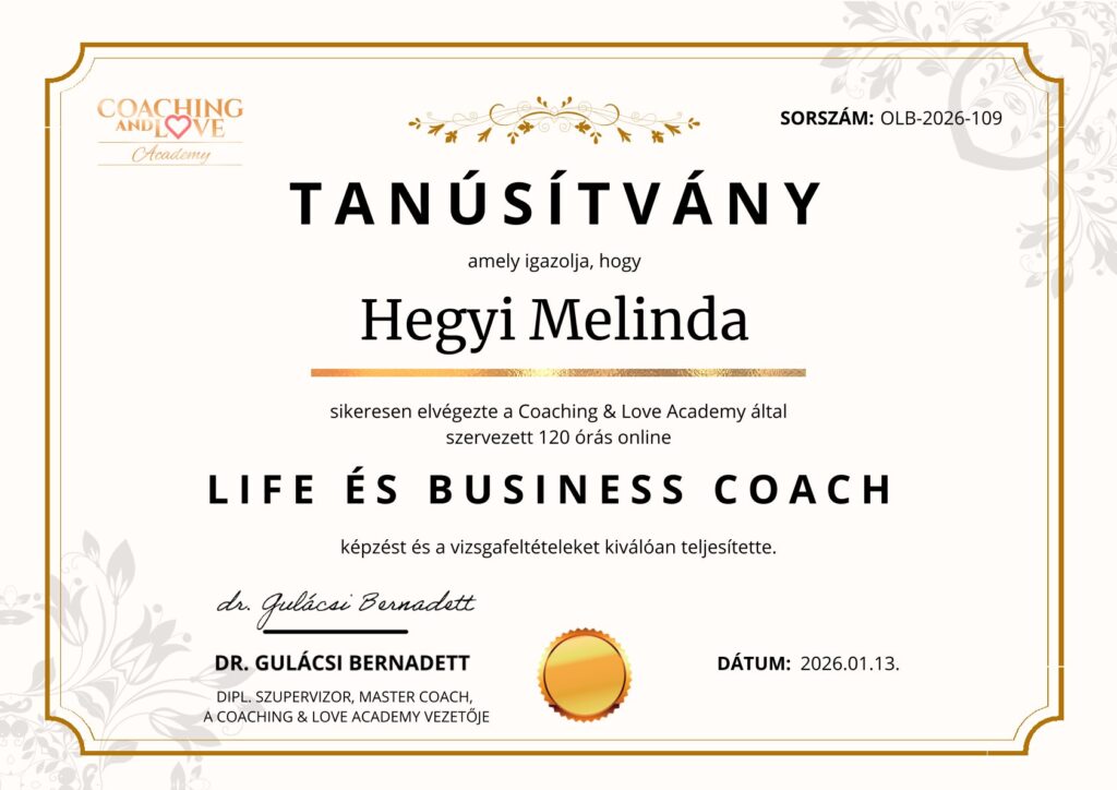 Life- és business coachként és leendő mentálhigiénés szakemberként abban segítek, hogy valóban jelen legyél a jelenedben. Segítelek egyéni fejlődésedben és problémáid megoldásában. Bármilyen egyéni, párkapcsolati, munkahelyi problémával, elakadással, döntési helyzetben, megélt trauma, félelem, önbizalomvesztés, megfogyatkozott énerő esetén keress bizalommal. Ha fejlődni szeretnél, ami az önazonosságodhoz elengedhetetlen, várlak ! Szaktudásommal, egyéni intuíciómmal és a megélt több mint 50 évnyi tapasztalatommal hitelesen és támogatóan segítelek az utadon.